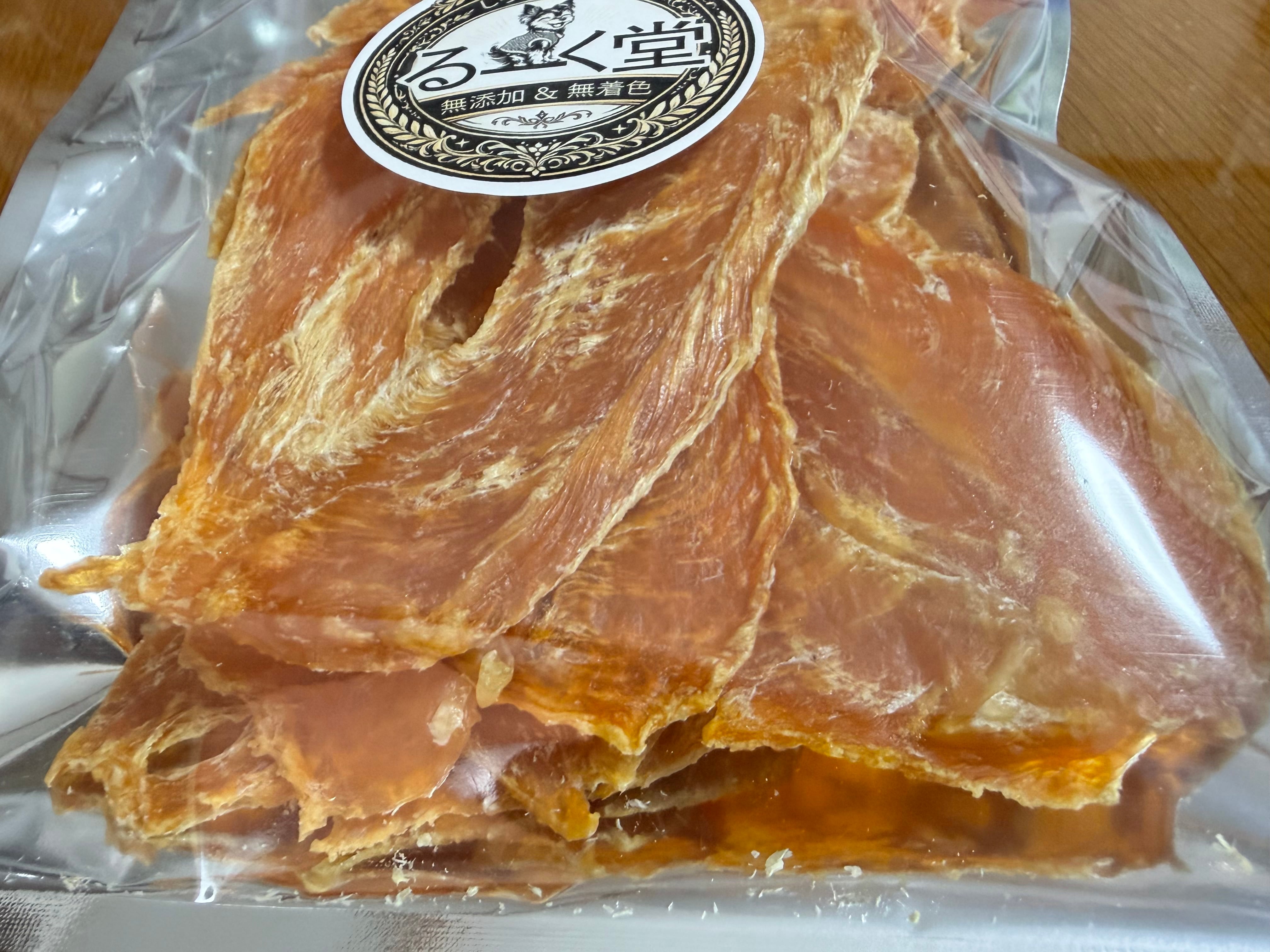ササミジャーキーは、やわらかで食べやすい鶏ササミを使用。愛犬が大好きな味わいです。おやつやトレーニングに最適で、健康にも配慮したおやつです。